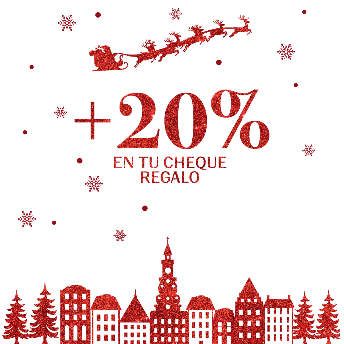 Te bonificamos el 20% del importe que ingreses en el cheque regalo para acumularlo en tu cuenta o en el propio cheque regalo.